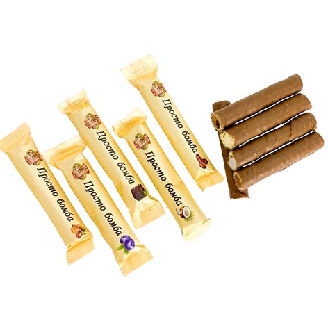 Воздушые хрустящие вафельные трубочки со вкусами "Кофе", "Кокос", "Трюфель", "Черника", "Вареное сгущенное молоко",  покрытые молочной шоколадной глазурью.