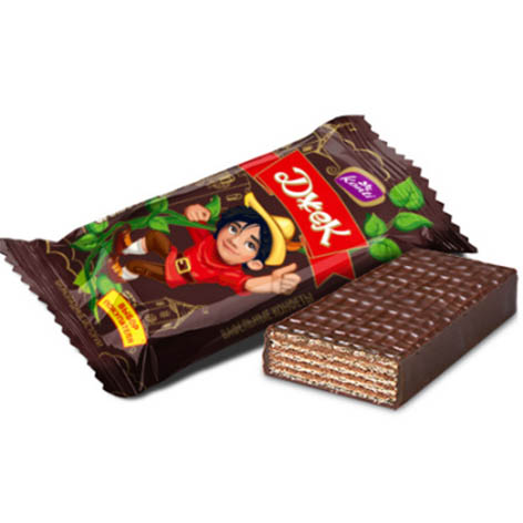 Укрупненные вафельные конфеты , в которых тонкие и хрустящие вафельные листы переслоены нежной начинкой с насыщенным вкусом какао в глазури .Всего 9 слоев .