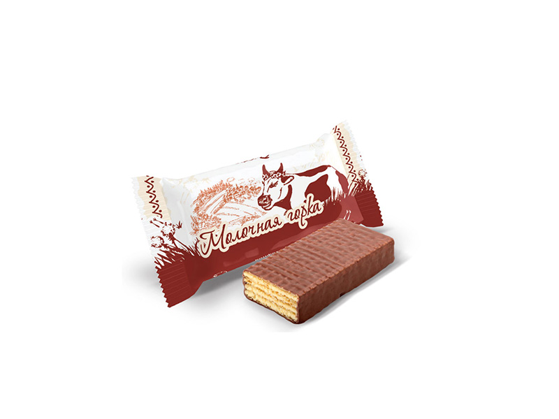 Укрупненные вафельные конфеты с воздушной, нежно-тающей начинкой с молочным вкусом, глазированные молочной глазурью