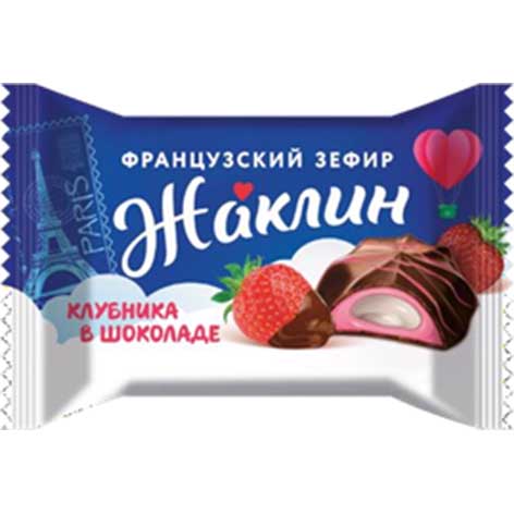 Конфеты Жаклин французский зефир вкус клубника в шоколаде, Славянка, пакет, 1 кг х 6 шт.