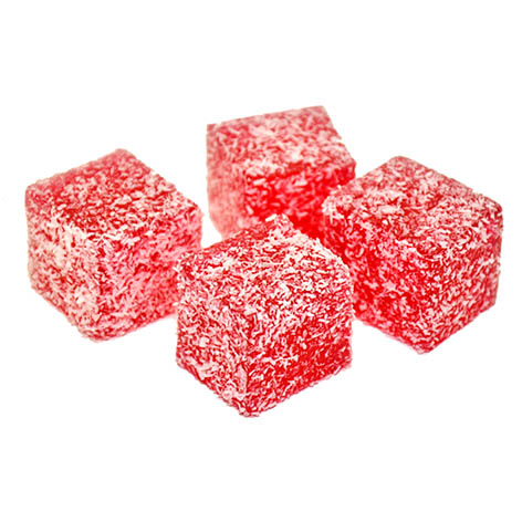 Мармеладные кубики со вкусом вишни в косовой стружке.