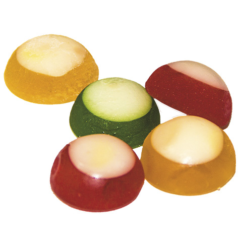 Мармелад куполообразной формы, состоящий из двух слоев: цветного и белого. Выпускается набором четырех сортов различной окраски и ароматов: манго-персик, манго, черимойя, ананас-маракуйя.