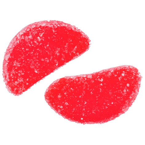 Мармелад в форме цитрусовых долек. Поверхность мармелада обсыпана сахаром-песком.