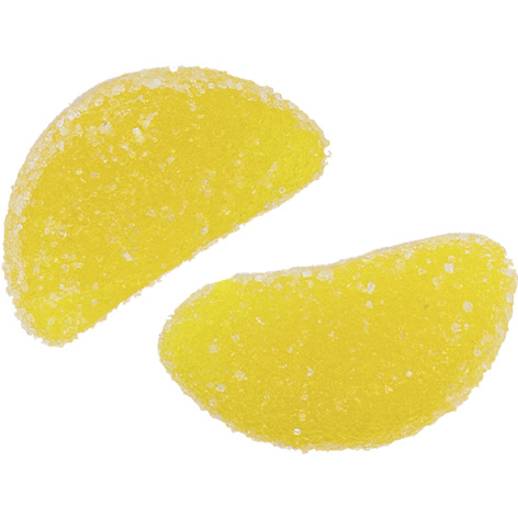 Мармелад в форме цитрусовых долек. Поверхность мармелада обсыпана сахаром-песком.