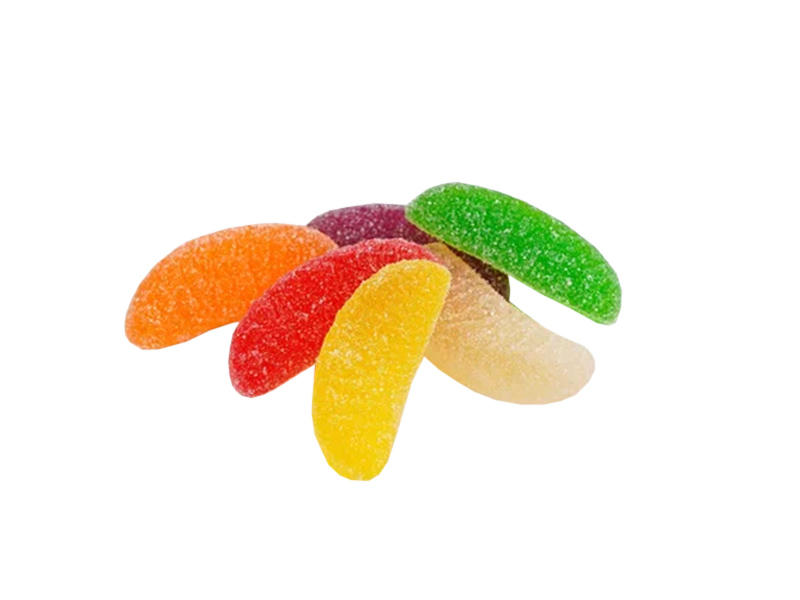 Мармелад желейно-формовой в виде долек со вкусом клубники, лимона, апельсина, чёрной смородины, яблока, ананаса в сахаре
