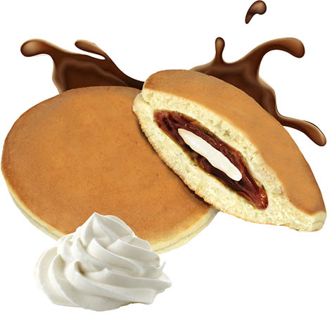 Нежные оладушки из мягкого бисквитного теста с начинкой из шоколадного и ванильно-сливочного крема.