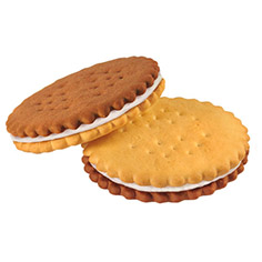 Сэндвич из шоколадного и сливочного крекера с нежной кремовой начинкой. В составе - натуральные сливки, какао.