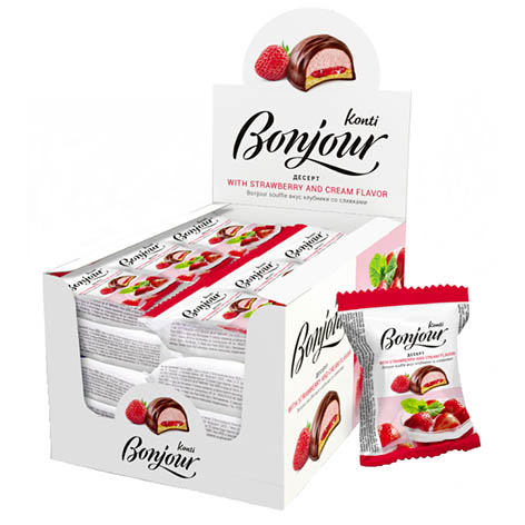 Десерт Бонжур клубника со сливками, Конти, 29 г х 18 шт.
