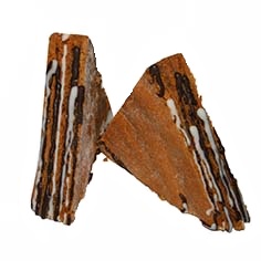 Медовое пирожное из пяти тончайших коржей с прослойкой из вареного сгущенного молока и декорированное белым и темным шоколадом, треугольной формы