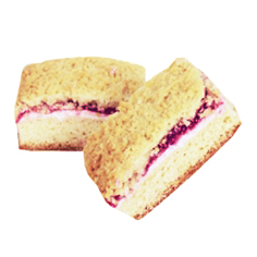 Бисквитное пирожное с прослойками творожного крема и джема из натуральной малины, обсыпанное рубленным тестом