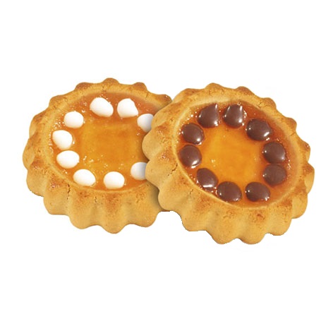 Открытое песочное печенье с апельсиновым джемом и двумя видами декора - темным и белым шоколадом
