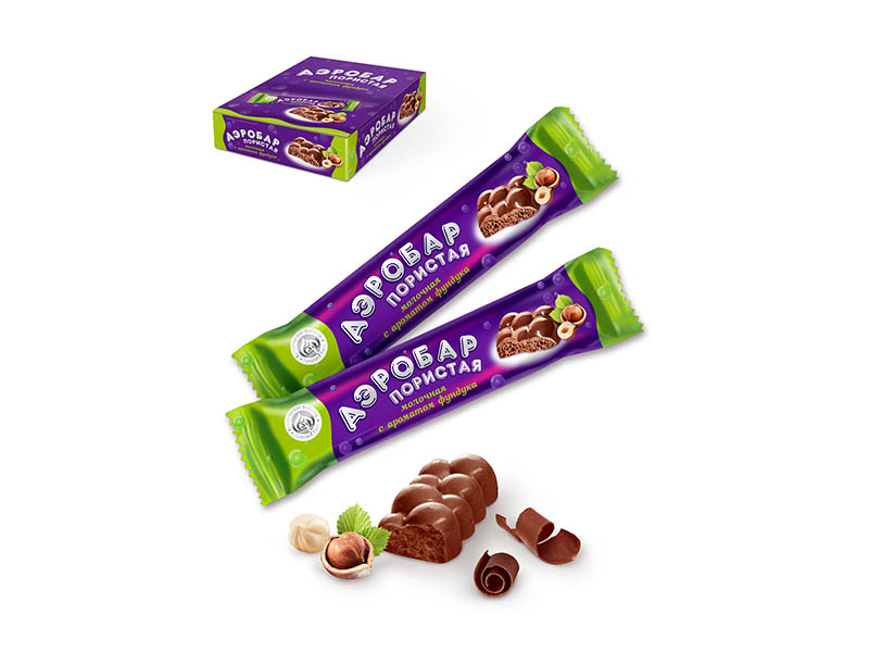 Кондитерская плитка пористая, Аэробар молочный с фундуком, Золотая Русь, 28 г х 18 шт.