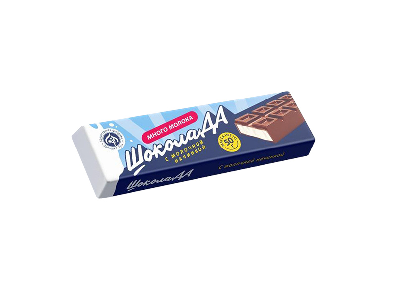 Плитка кондитерская в форме батончика Шоколада с молочной начинкой, много молока