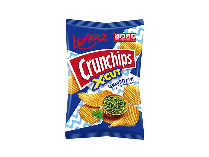 Чипсы рифленые Crunchips X-Cut со вкусом Аргентинского соуса Чимичурри, Лоренц, 70 г.