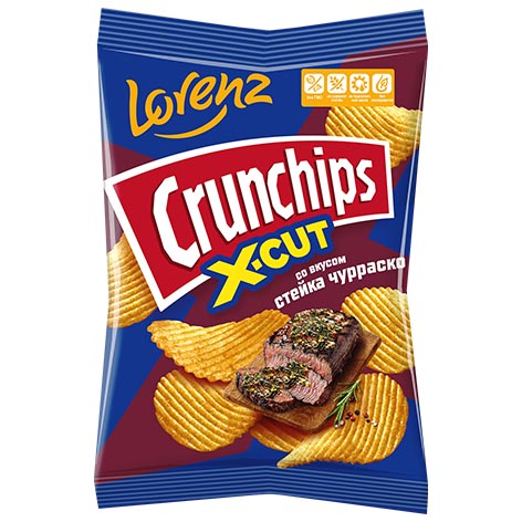 Чипсы Crunchips X-Cut со вкусом стейка чурраско, Лоренц, 70 г.