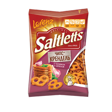 Чипс-крендель с чесноком и зеленью Saltletts, Лоренц, 70 г.